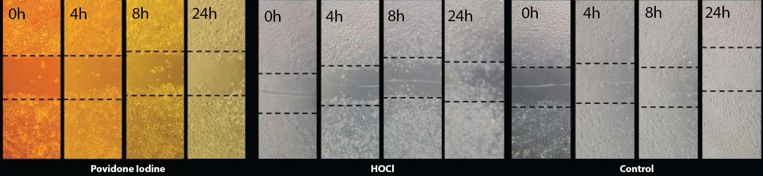 According to the clinical study performed with Povidone iodine on fibroblasts and keratinocytes.